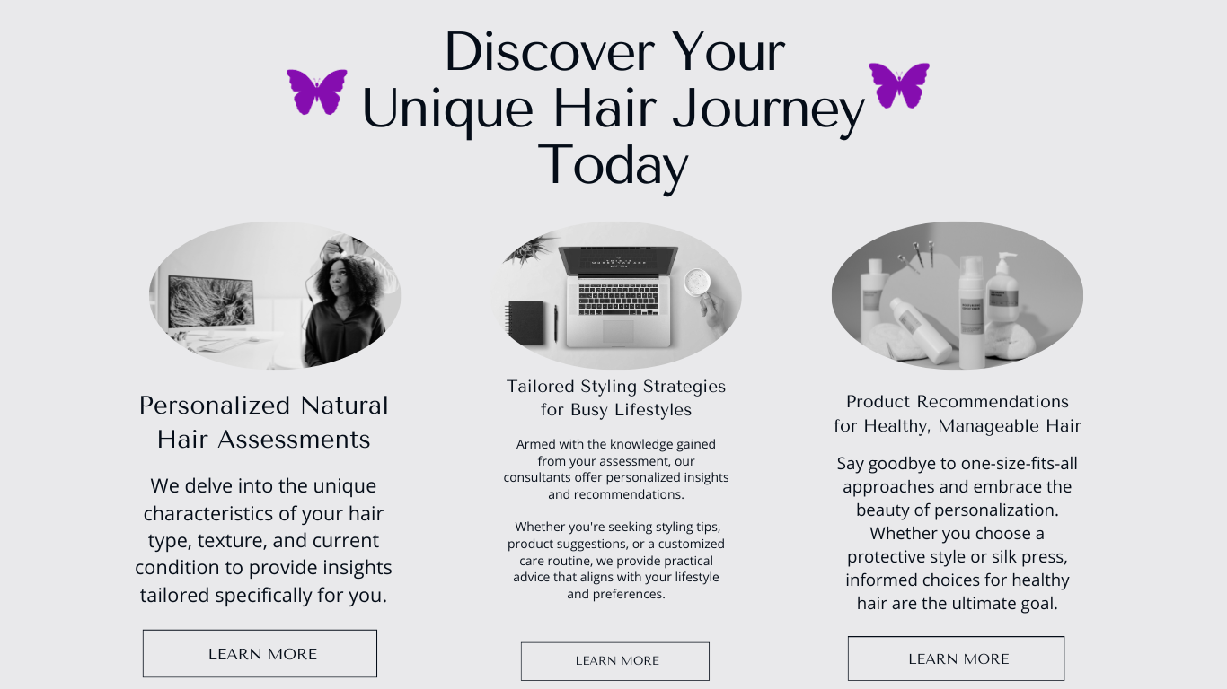 Unlock the full potential of your natural hair with our tailored assessments – because your hair deserves an expert touch that's as unique as you are.