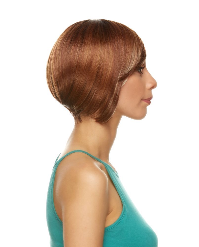 A chic bob angled perfectly to fit around the face with side swept bangs.
